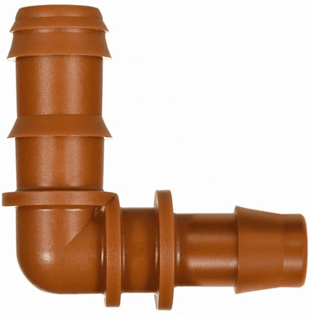 La conexión en codo CTR AZUD FIT PLUS en color marrón es un accesorio de alta calidad diseñado para la salida en ángulo de ramales en instalaciones de riego localizado.