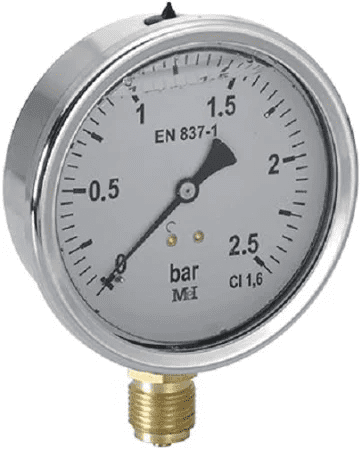 Disponible en tres rangos de presión (0-2,5 bar, 0-6 bar y 0-10 bar), este manómetro es ideal para monitorear sistemas de baja y media presión en procesos de control, hidráulicos y neumáticos. Su diseño robusto incluye una carátula de acero inoxidable (o plástico, dependiendo del modelo), con una escala fácil de leer y una conexión estándar que facilita su instalación en una amplia gama de sistemas.
